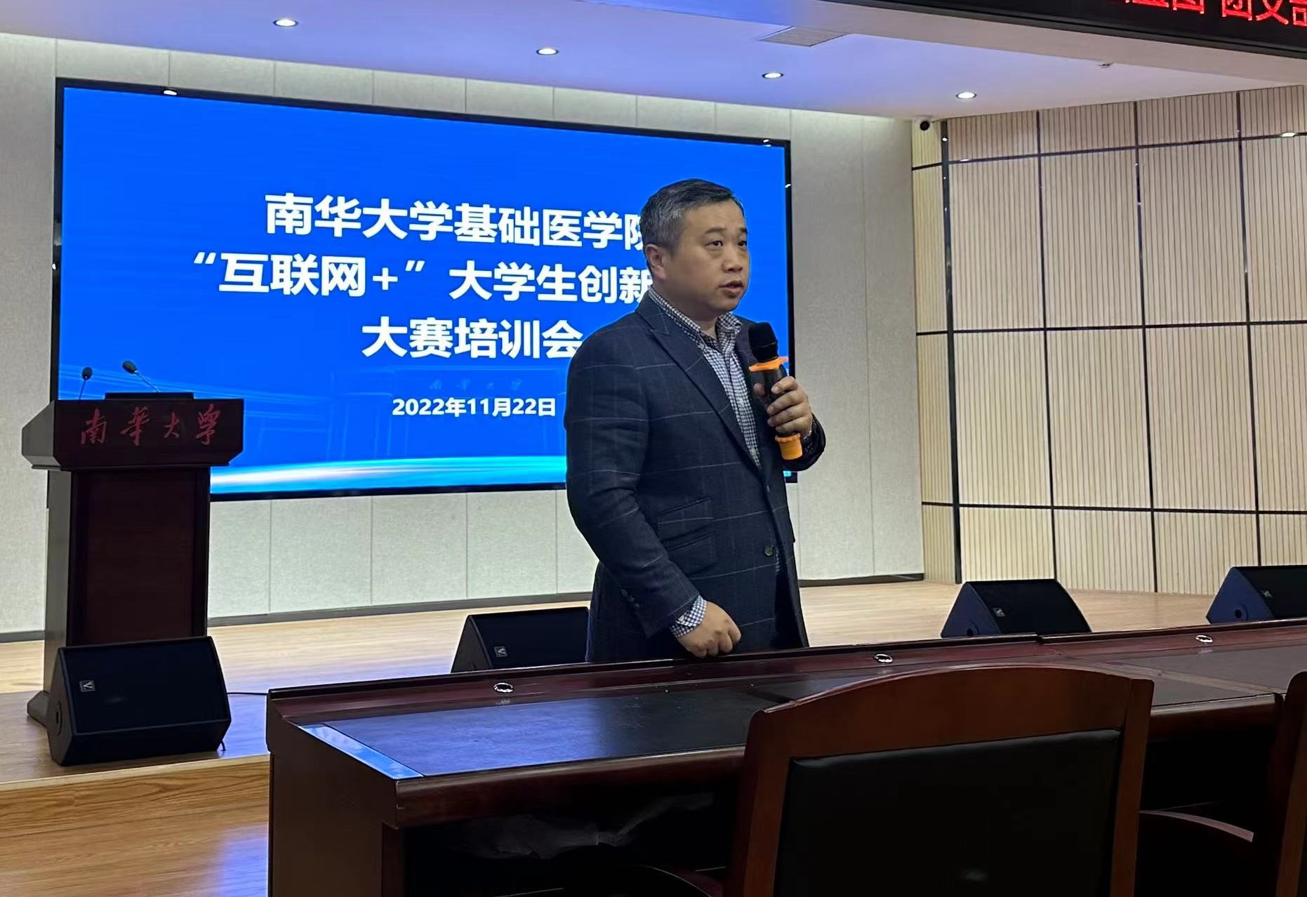 为加快培养创新创业人才,激发大学生创新创业热情,在创新创业中积累经验,提高学生的创新精神和创业能力。11月22日晚,南华大学衡阳医学院基础医学院在红湘校区医研楼会议室召开了“互联网+”创新创业大赛培训会。本次会议邀请了曾多次获得“互联网+”“挑战杯”等大学生创新创业省级奖项的黄靓老师进行了讲座,相关获奖项目团队负责人程哲彬同学分享了比赛心得体会和经验。会议由基础医学院副院长谢巍教授主持。基础医学院各班班长、团支书、科创联络人及部分老师参加此次会议。