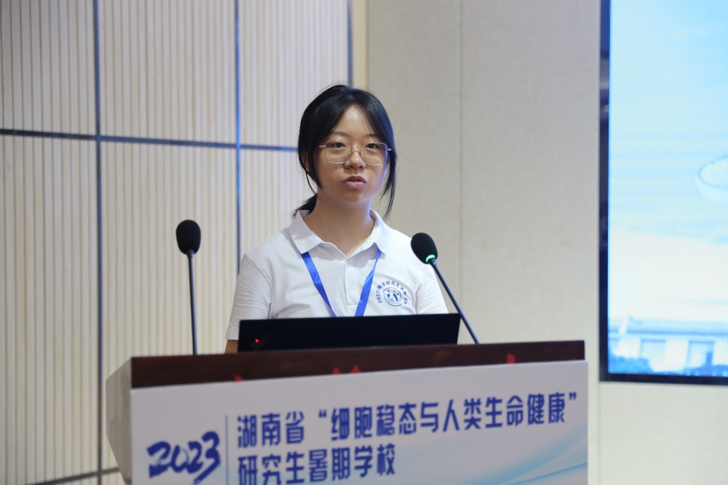 南华大学衡阳医学院2023级生物学研究生谢亦熙作学员代表发言,她表示,全体学员将抓住机会,认真倾听各位老师的讲座,了解掌握前沿知识。不仅要在学习中提取重点知识,与既有知识融会贯通;更要积极沟通,抓住这次近距离解惑的机会,紧跟老师的思路进行思考。作为生物学领域的一员,我们应该立志笃学,共同进步,为“人类生命健康”这一庞大而重要的领域的发展贡献自己的力量。
