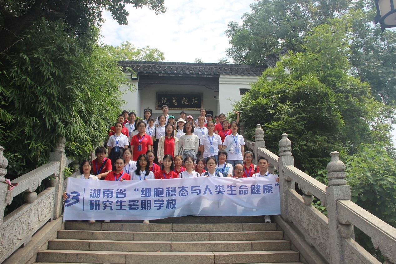 研究生暑期学校学员一行人来到了位于湘江蒸水交汇处的石鼓书院。石鼓书院为宋代四大书院之一,湖湘文化发祥地,鼎盛千年,名噪朝野,在中国书院史、教育史、文化史上享有极高的地位。穿梭于时间的洪流,走过历史的云烟,石鼓书院的历史贯穿了中国古代书院发端、发展、鼎盛直至顺应时势的改制过程。它不仅仅是衡阳的重要文化地标,还是涵养着衡阳以及湖湘地区的文脉与精神瑰宝。此次湖南省“细胞稳态与人类生命健康”研究生暑期学校安排外校和本校的学员们参观石鼓书院,旨在传播中华传统文化,感知衡阳文化魅力。