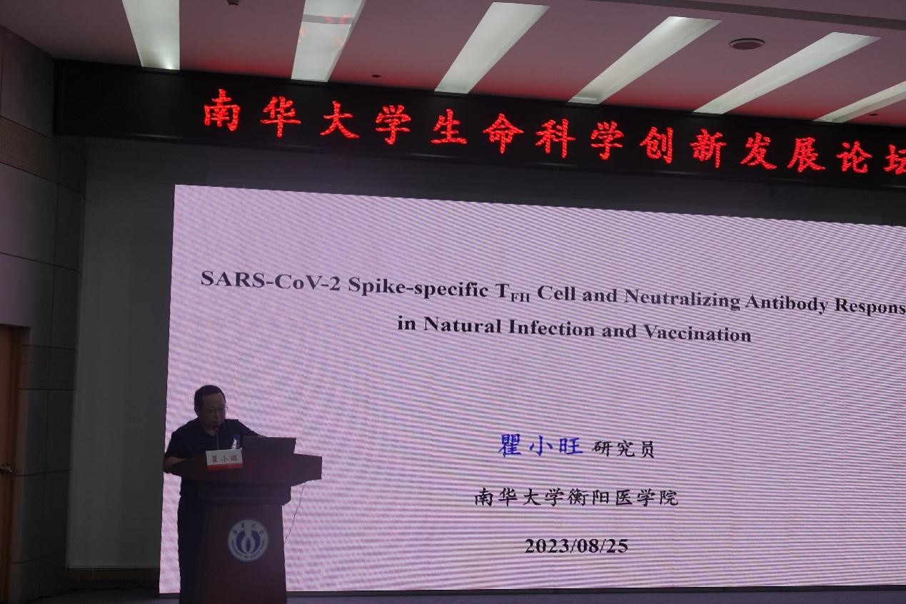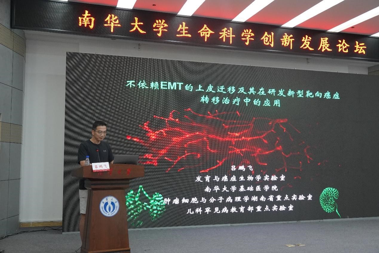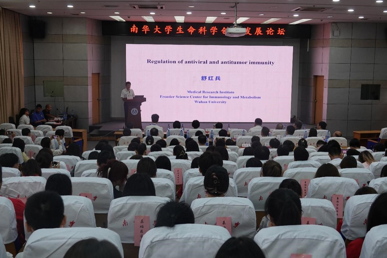 8月25日,为庆祝衡阳医学院建院65周年,南华大学生命科学创新发展论坛在我校隆重举行。南华大学党委书记高山、党委委员及副校长夏昆教授,武汉大学舒红兵院士,中山大学林天歆教授,武汉大学李国红教授,北京师范大学任海云教授,中南大学刘静教授,我校衡阳医学院曾国、卢清华、周杰灿、曾希、张晓东、吕斌、吕鹏飞、罗均利、李春权、瞿小旺等多位领导及专家出席,2023年湖南省“细胞稳态与人类生命健康”研究生暑期学校的全体学员、南华大学相关专业老师和在校学生等260多人参加了此次论坛。此次论坛开幕式由南华大学党委委员、副校长夏昆教授主持。学术报告由夏昆、刘文捷、吕斌、李忠玉、唐北沙等专家主持。