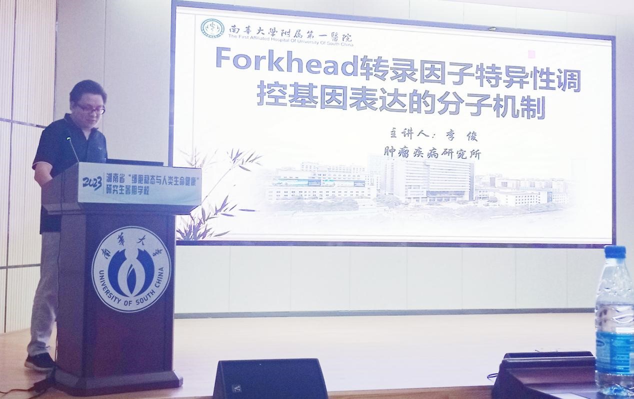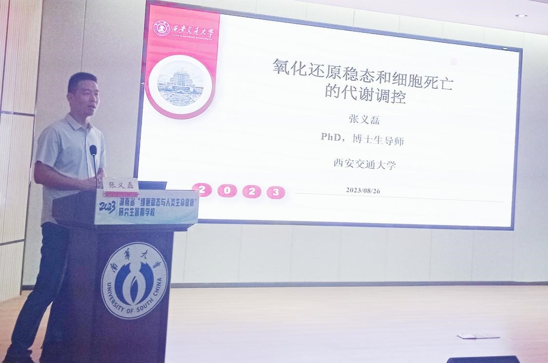 2023年8月26日上午,是湖南省“细胞稳态与人类生命健康”研究生暑期学校举行的第八日,由西安交通大学张义磊教授、中南大学张鹏飞研究员和南华大学李俊博士进行学术报告,衡阳医学院医院管理办公室副主任兼南华大学党政办副主任李国华主持,衡阳医学院教师和研究生代表约140人参加。