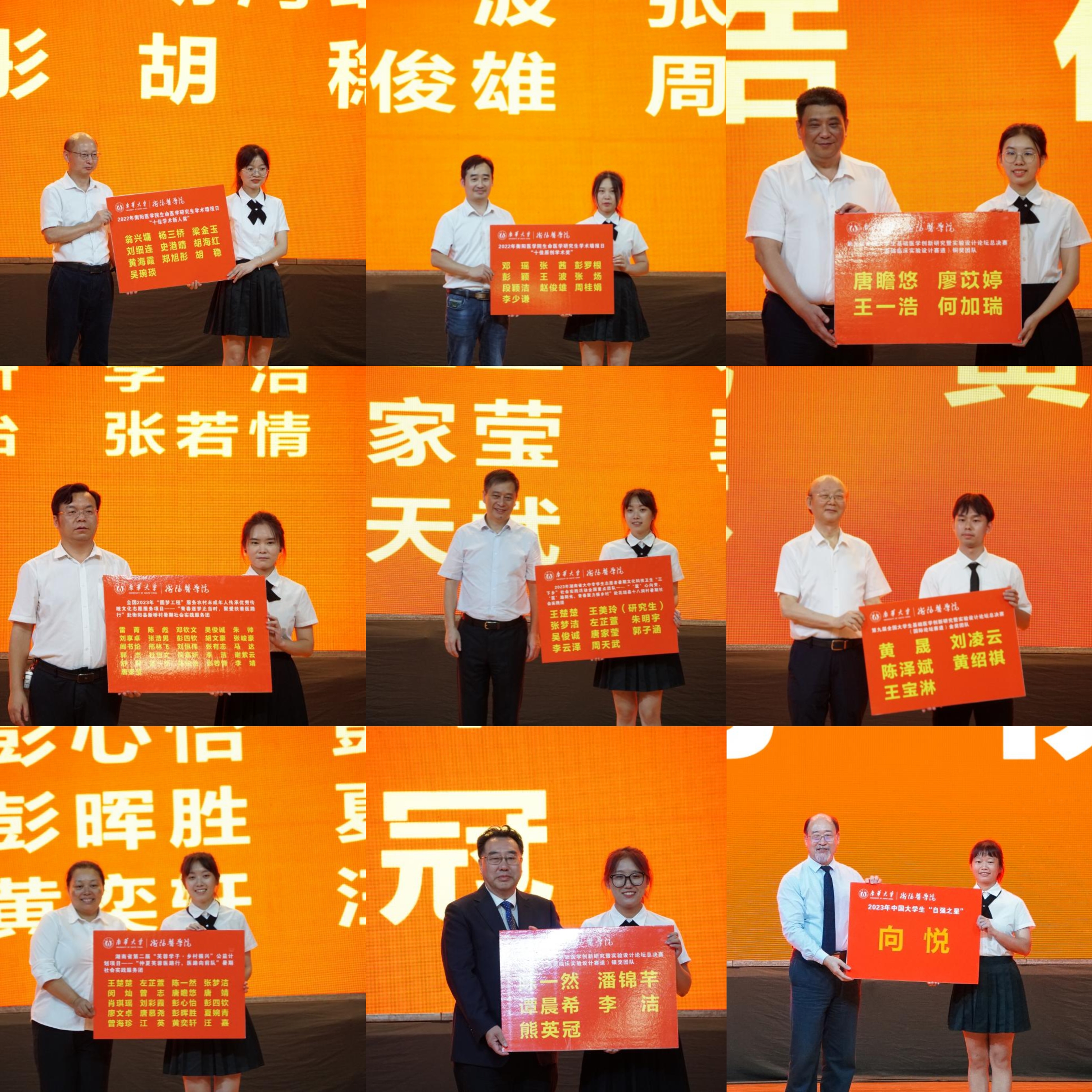 接下来的议程是给优秀学生(团队)颁奖,共有九批同学因在学科竞赛、社会实践等方面取得优秀成绩受到表彰,周宏灏院士、王福俤副校长等受邀给获奖者颁奖,现场观众们为他们取得的优异成绩热情鼓掌表示祝贺。
