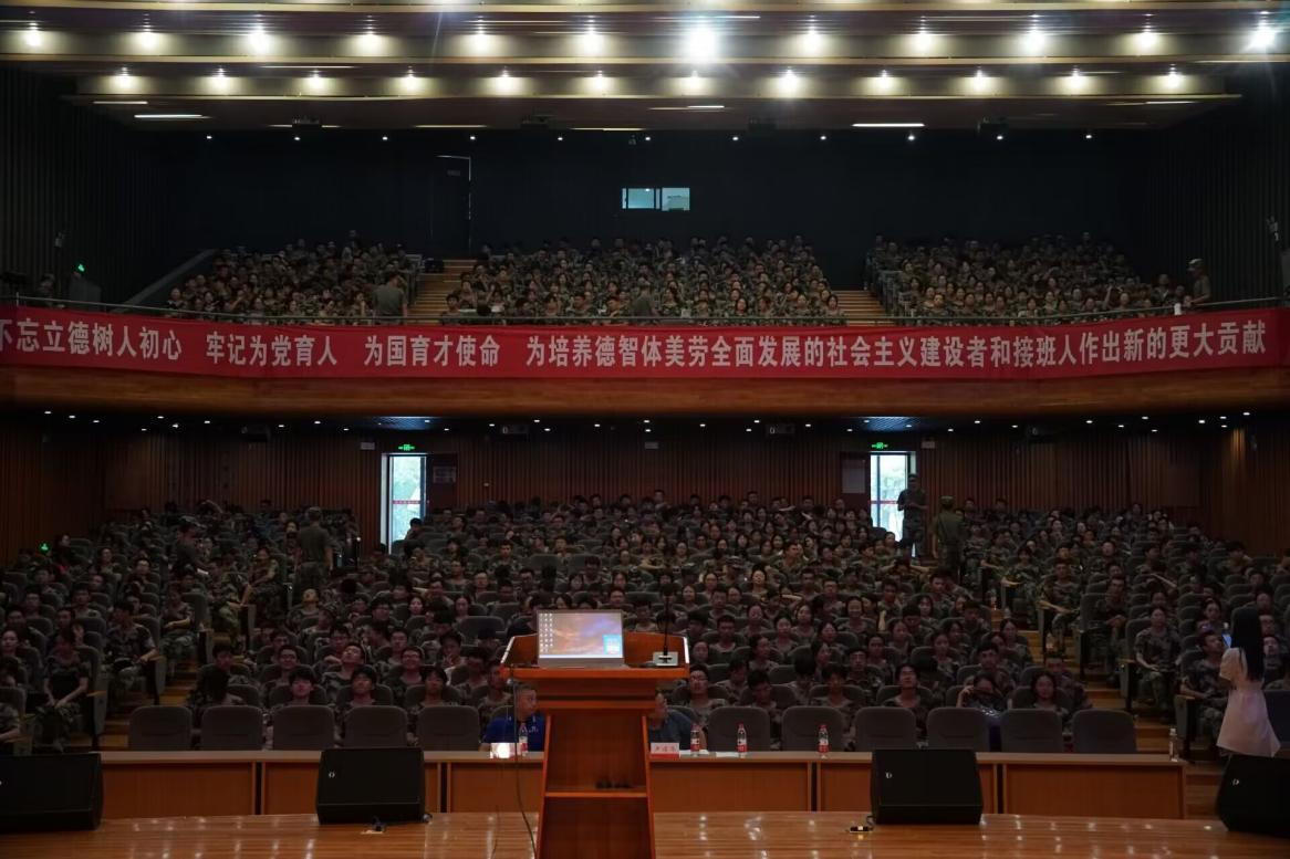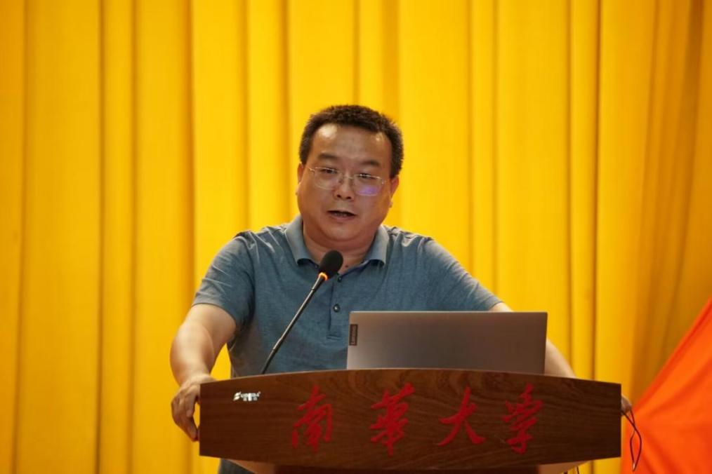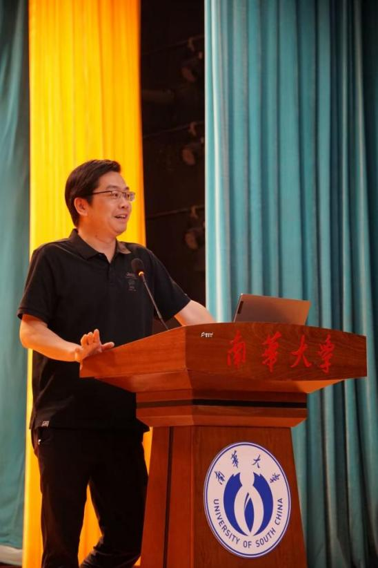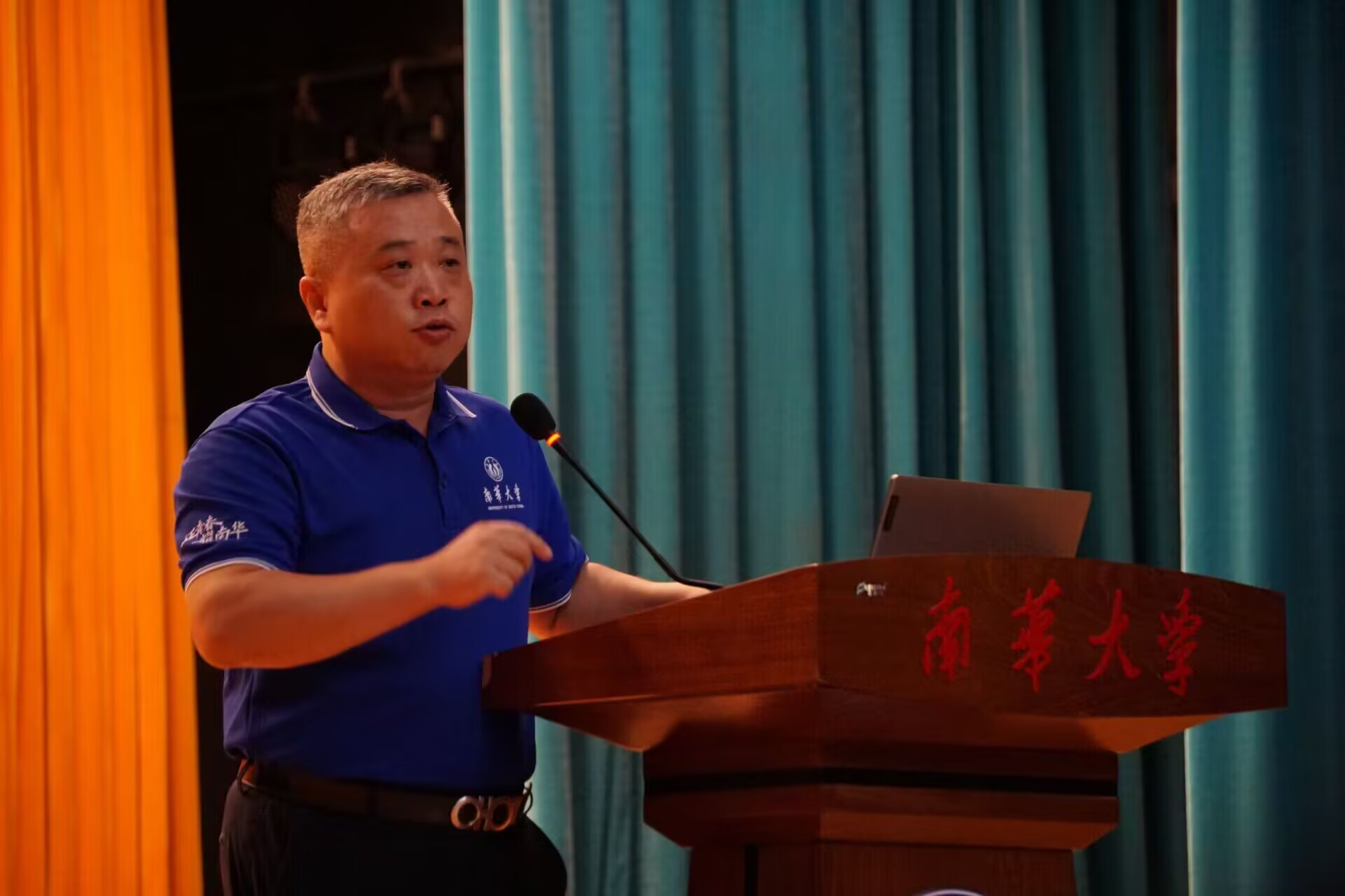 最后,党委书记曾国作总结讲话,他首先和新生分享了一位医学影像专业学生摆脱高考录取被调剂的迷茫后,在医学与计算机的结合领域发光发热的故事,借此鼓励新生始终心怀梦想,逐梦前行。接着,他讲述了衡阳医学院优秀校友雷冬竹的事迹,在2008年冰灾长达数十日的全城停电期间,雷冬竹始终咬牙坚挺在临床一线接诊产妇、接生婴儿280名,特别是为挽救一位新生婴儿不怕牺牲进行口对口抢救,以至于自己被感染在医院抢救治疗一个月。讲到此处,曾国向新生强调一定要坚持人本至上,情怀高远,并笃定前行,追求卓越。最后,他向在场新生寄予殷切期盼,愿其在青春年华中,放飞青春梦想,努力奋斗拼搏,终有一天会大鹏一日同风起,扶摇直上九万里。