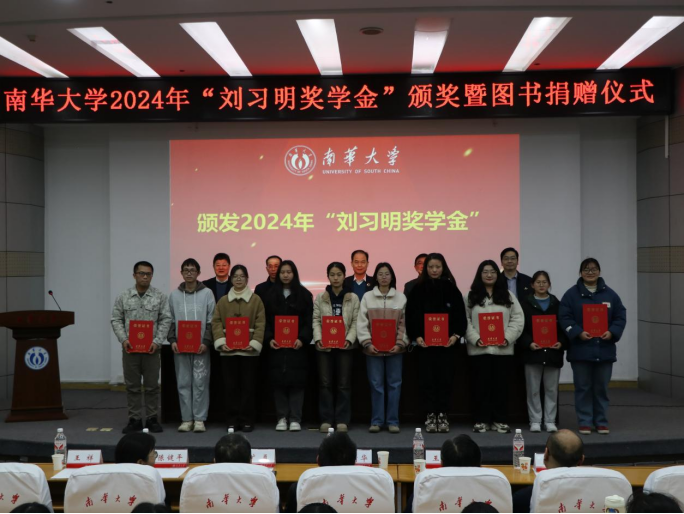 12月31日下午,南华大学2024年“刘习明奖学金”颁奖暨图书捐赠仪式在红湘校区图书馆一楼报告厅举行。长沙生殖医学医院·长沙宁儿妇产医院、湘西宁儿妇产医院院长刘习明,南华大学党委委员、副校长于涛出席颁奖仪式。仪式由衡阳医学院党委书记曾国主持。