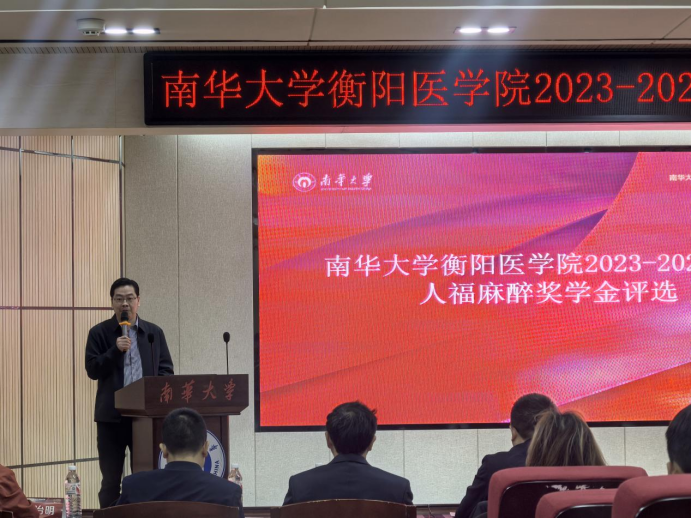 为了表彰先进,激励麻醉专业学生踔厉奋发,向上向善,2025年3月16日下午,衡阳医学院2023-2024学年人福麻醉奖学金评选会在南华大学医研楼学术报告厅顺利举行。南华大学衡阳医学院党委书记曾国,南华大学第二临床学院党委副书记、院长、南华大学衡阳医学院麻醉学系主任刘文捷,南华大学基础医学院党委副书记卢清华,以及来自各附属医院的屈林涛、王德明、李超、谢鹏、张治明、梁娜、曾志英等专家教授受邀担任评委,学院麻醉专业的本科生和研究生代表100余人共同参会。