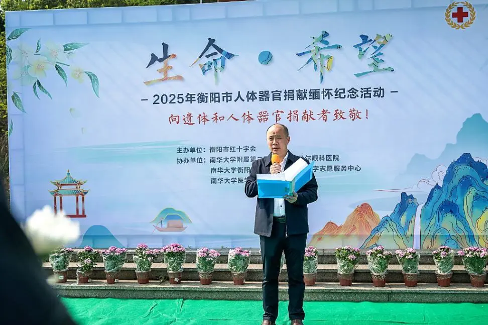 “一年一清明,一岁一哀思”。为了缅怀纪念角膜遗体捐献和人体器官捐献者,践行社会主义核心价值观,弘扬人道、博爱、奉献的红十字精神,4月2日上午,南华大学附属第二医院、南华大学衡阳医学院、衡阳爱尔眼科医院、衡阳市红十字志愿服务中心共同举办的“生命·希望——2025年人体器官捐献缅怀纪念活动”在衡阳市万福陵园举行,约有近200人参与活动。