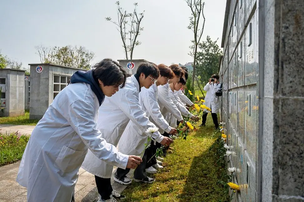偏离城市的一隅,万福陵园在这一天显得格外庄严肃穆。阳光照射在陵园的石碑上,为黑白的照片添上温暖的底色;代表爱意的黄菊和代表思念的白菊静静挺立在石碑之下,所有人向着这些伟大的普通人默哀致意。他们虽已离去,却以至善至美的奉献,延续着生命的温度。