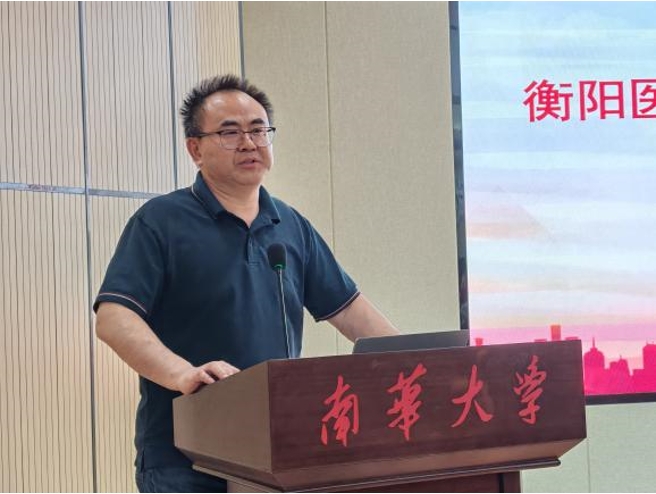 分享会伊始,基础医学院副院长谢巍介绍与会领导和讲者;随后衡阳医学院党委书记曾国讲话,医学生应当深刻把握“创新思维”与“实践能力”的双重内涵,将创新能力培养内化为终身发展的核心素养,鼓励衡医学子在双创赛道上展现衡医风采。