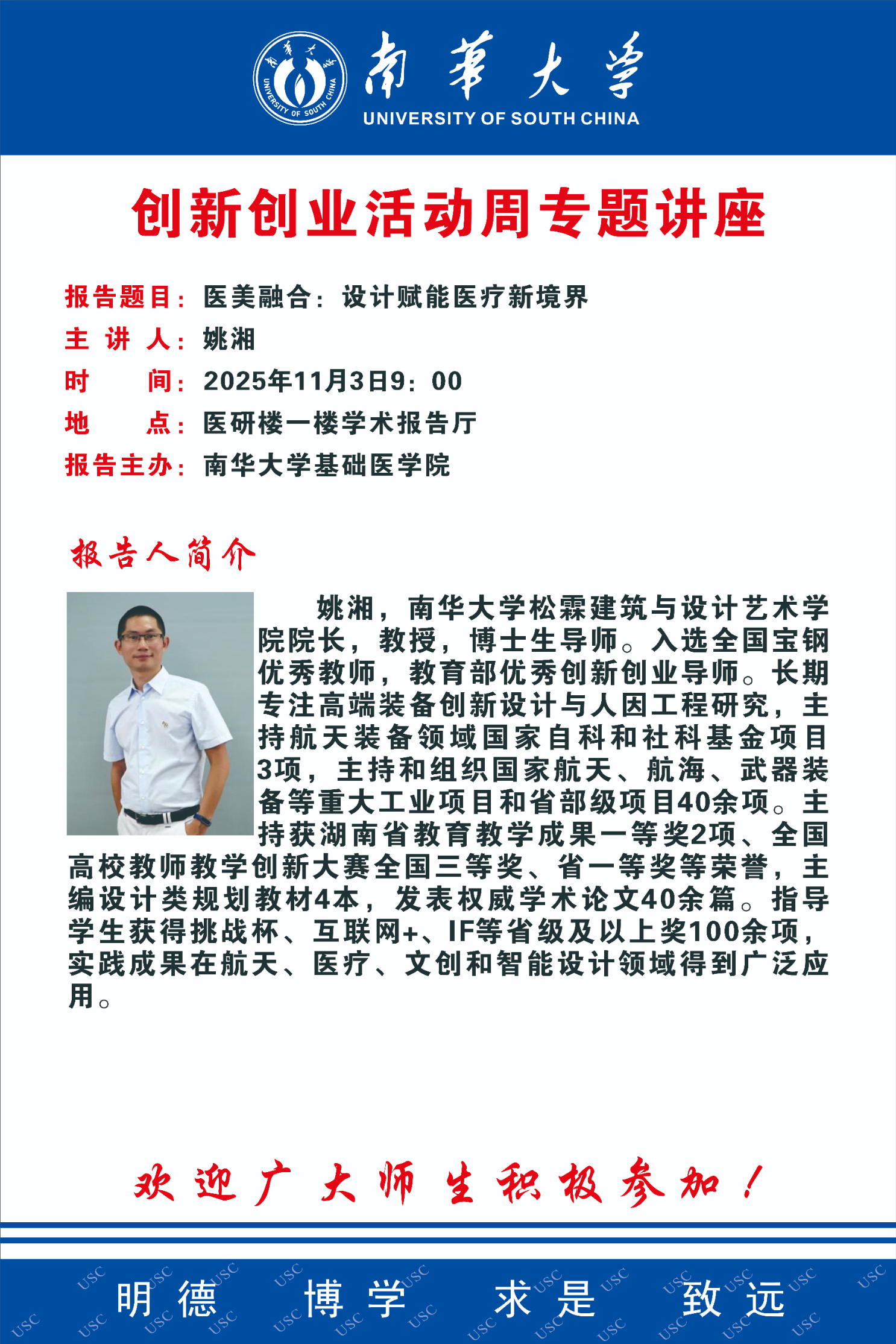 创新创业活动周专题讲座 | 姚湘:医美融合--设计赋能医疗新境界