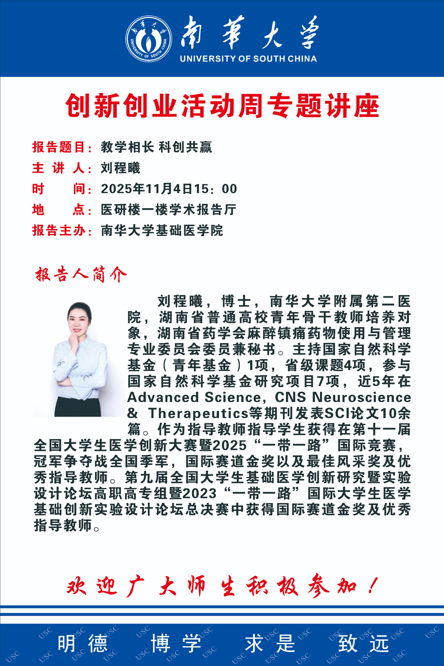 创新创业活动周专题讲座 | 刘程曦:教学相长 科创共赢