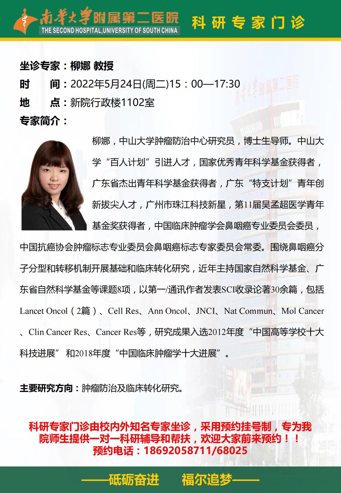 南华大学附属第二医院科研专家门诊:柳娜教授