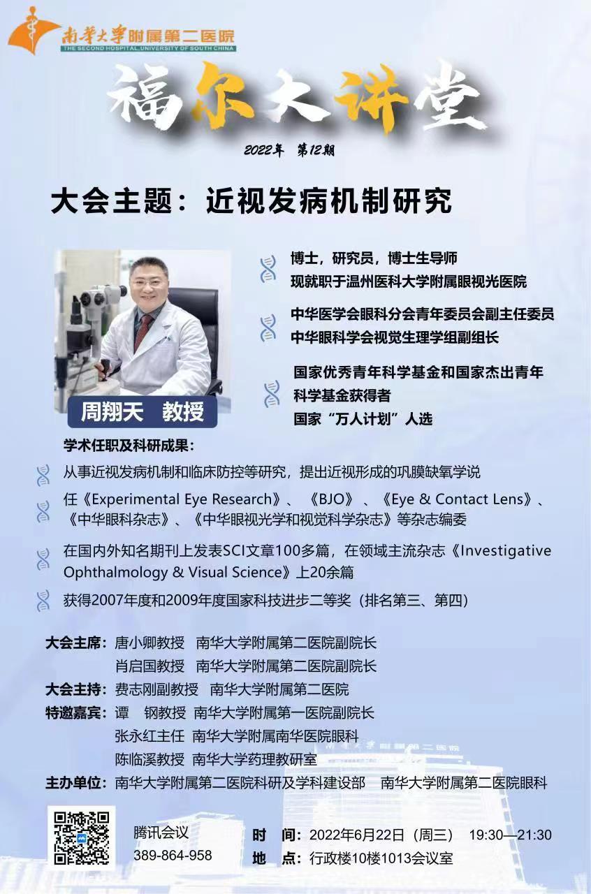 科研讲座 | 附属第二医院福尔大讲堂:近视发病机制研究