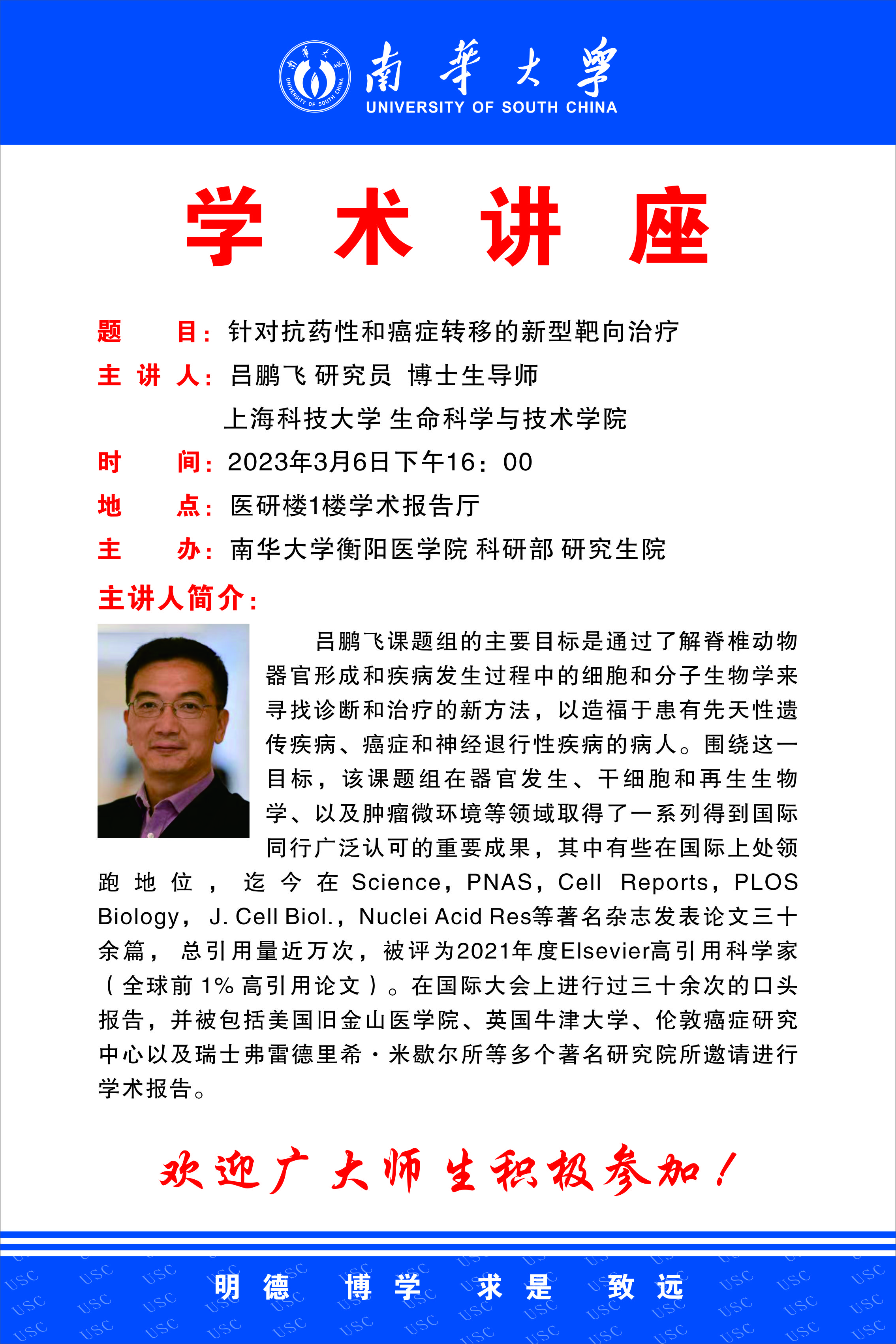 科研讲座 | 吕鹏飞研究员:针对抗药性和癌症转移的新型靶向治疗