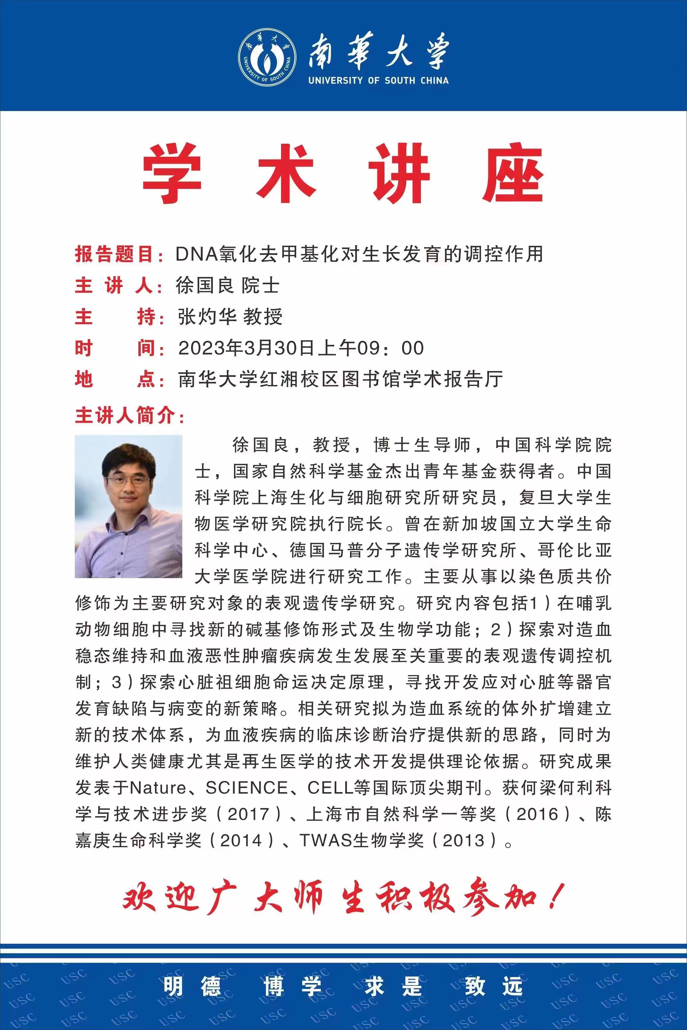 科研讲座 | 徐国良院士:DNA氧化去甲基化对生长发育的调控作用