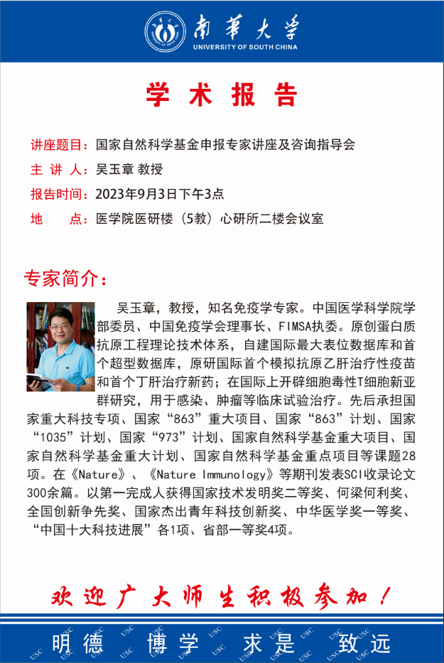 学术讲座 | 吴玉章教授:国家自然科学基金申报专家讲座及咨询指导会