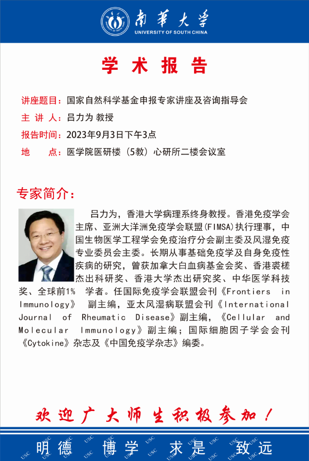 学术讲座 | 吕力为教授:国家自然科学基金申报专家讲座及咨询指导会