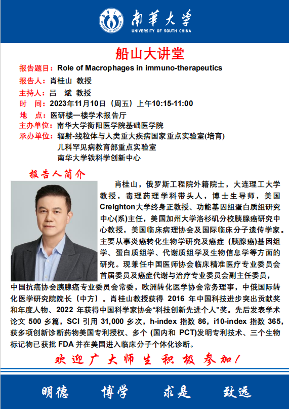 船山大讲堂 | 肖桂山教授:Role of Macrophages in immuno-therapeutics