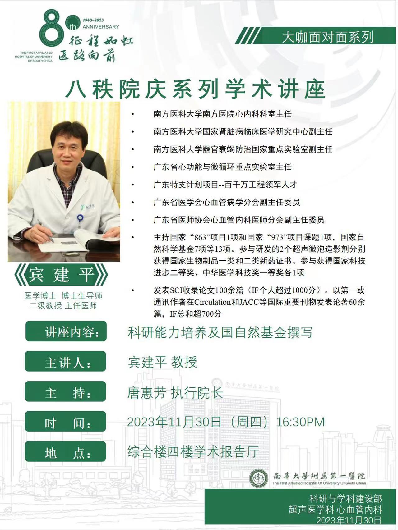 附一大咖面对面系列讲座 | 宾建平教授:科研能力培养及国自然基金撰写