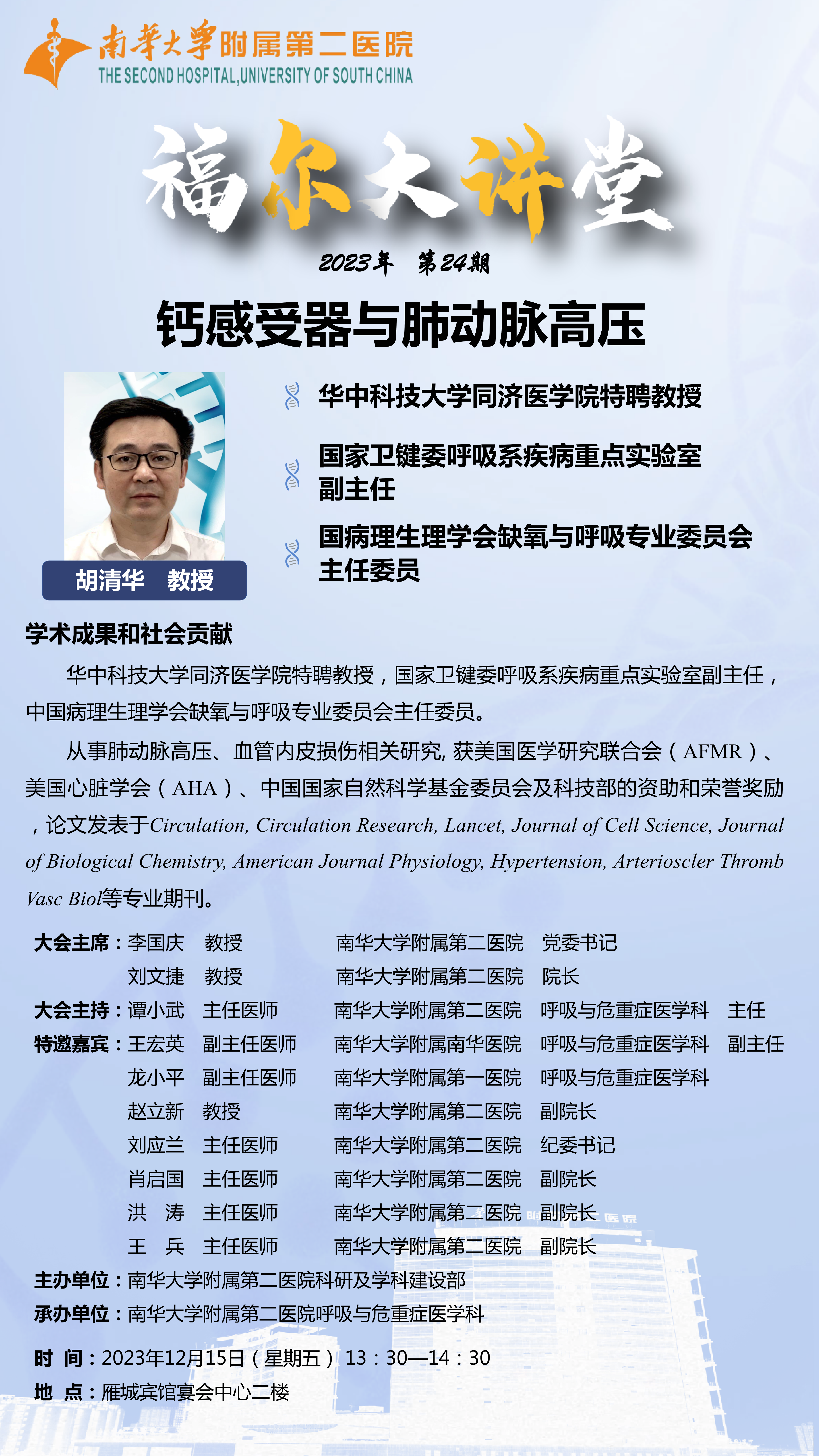 学术讲座 | 附二福尔大讲堂:钙感受器与肺动脉高压