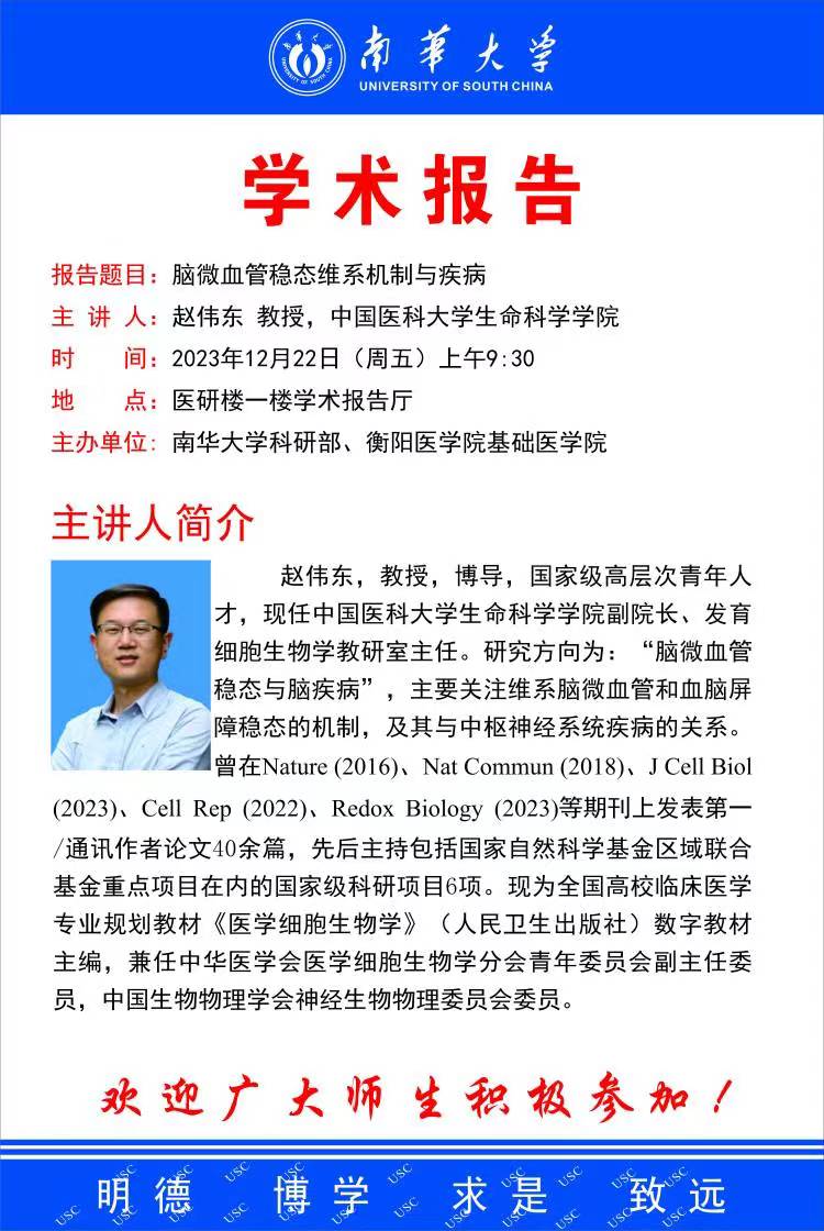 学术讲座 | 赵伟东教授:脑微血管稳态维系机制与疾病