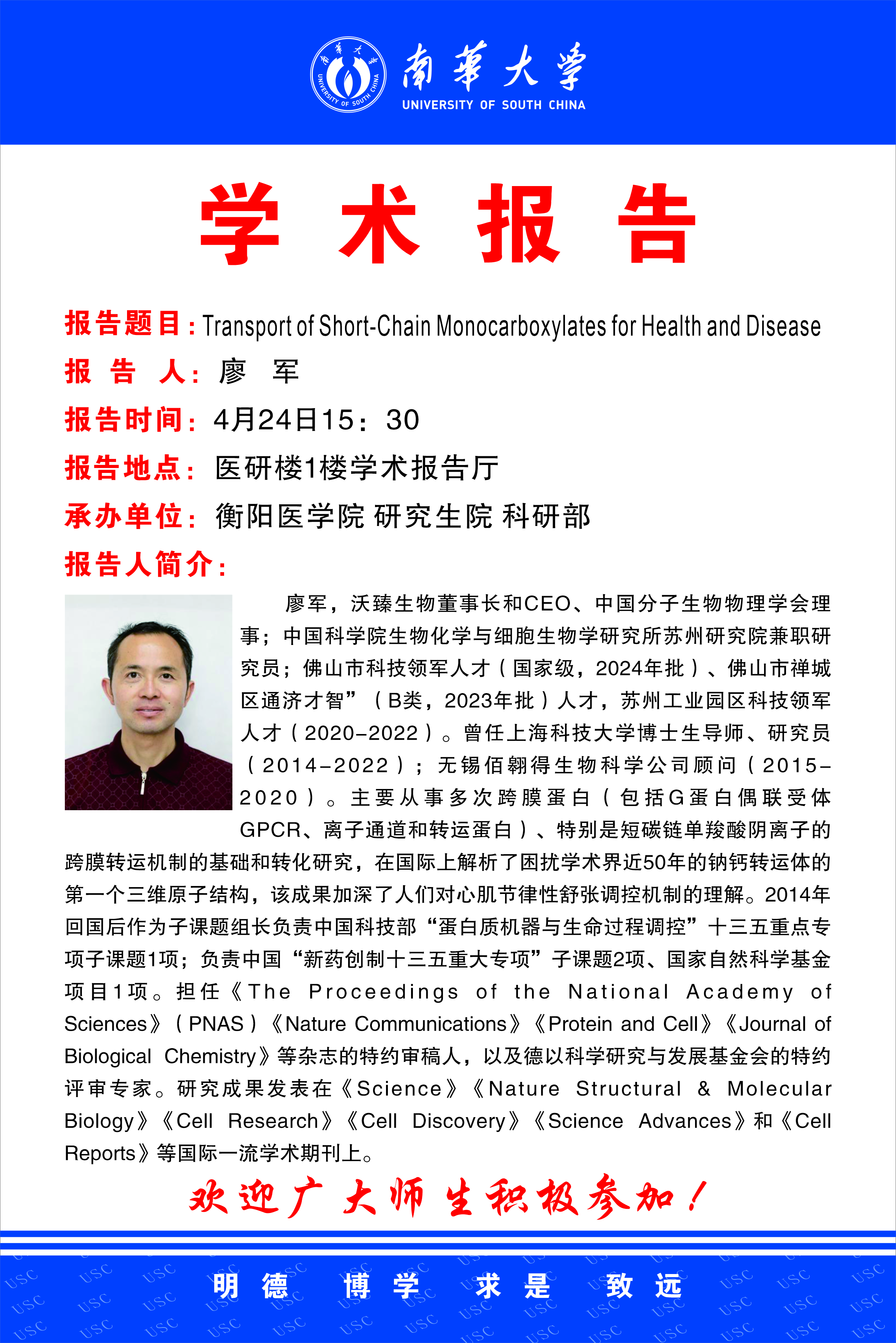 学术报告 | 廖军博士:Transport of Short-Chain Monocarboxylates for Health and Disease