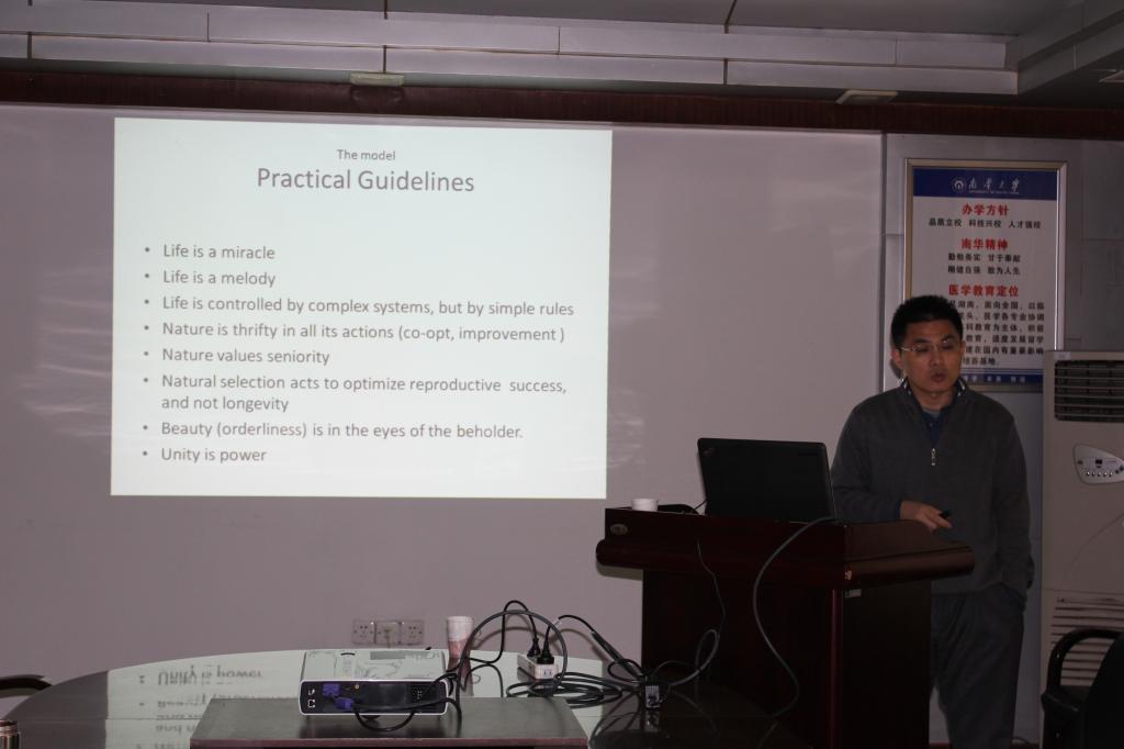 2015年3月19日上午9:00 - 10:00,我校1985届毕业生,来自美国西佛吉尼亚州贝克利退伍军人医院病理科主任孙喜春教授,应邀来我校医学院学术报告厅作了题为“癌症发生新模式:对早期胚胎发育拙劣的模仿”的学术报告。报告会由南华大学医学院党委书记、肿瘤研究所所长贺修胜教授主持,学院桂庆军副院长出席了报告会,病理学科老师们、附一医院病理科主任、副主任及全体研究生参加了报告会。