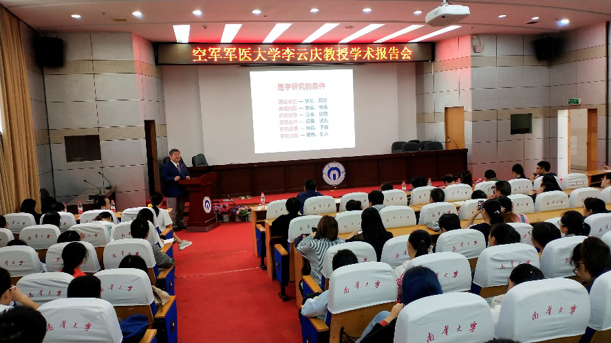 5月20日上午,空军军医大学梁銶琚脑研究中心主任,“长江学者”奖励计划特聘教授李云庆应我校邀请来访,并在南华大学“船山大讲堂系列讲座,2019年衡阳医学院科技活动月---人体解剖与组织胚胎学分论坛”进行了学术报告。该报告会由南华大学科研与学科建设部、衡阳医学院、应用解剖与生殖医学研究所共同承办。报告会由南华大学衡阳医学院党委常务副书记陈端阳主持,研究生工作部陈熙部长、教务部龙双涟副部长、科研与学科建设部万炜副部长、衡阳医学院李忠玉副院长、附属第一临床学院唐小卿副院长及衡阳医学院的老师代表、研究生和本科生200余人参加了此次学术报告会。