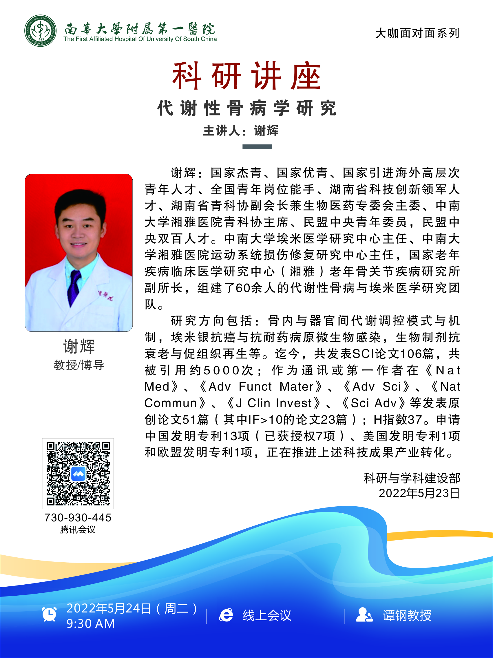 科研讲座|附属第一医院大咖面对面系列:GPCR在骨科疾病的基础和药物研发