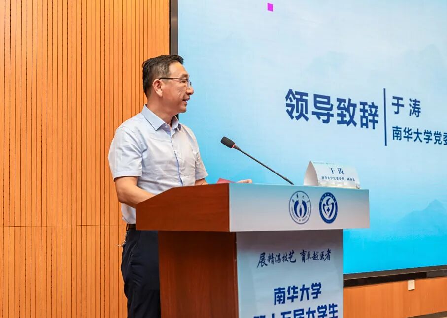 南华大学党委委员、副校长于涛,湖南省卫健委科教处副处长徐火红,邵阳市卫健委党组成员、副主任焦劲松出席开幕式并讲话;邵阳市中心医院党委书记朱鹏程致欢迎辞;南华大学衡阳医学院党委书记兼基础医学院党委书记曾国主持开幕式。