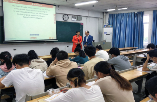 王校长细听了《大学英语》课程,密切关注学生的课堂学习状态,从不同角度对廖慧华老师的课堂进行了点评,并在阅读期间向学生了解情况,耐心嘱咐学生们专心上课,提高课堂学习效率。