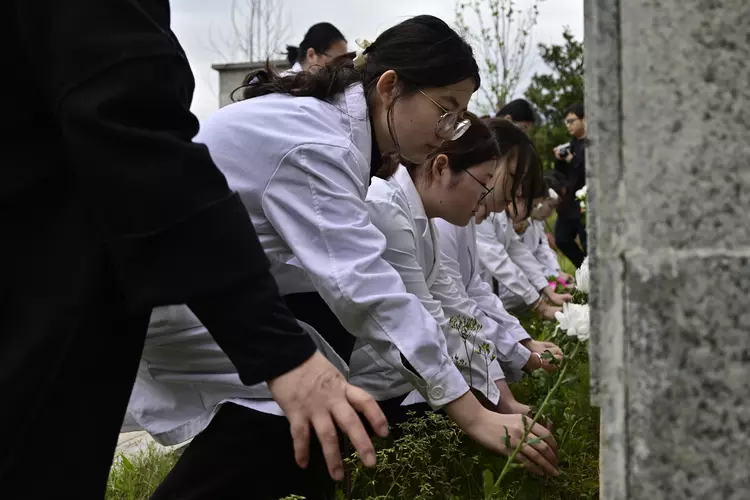活动现场,全体人员整齐地站立着,手捧着洁白的菊花,面对纪念碑,低头默哀。南华大学医学院的学生们齐声朗诵诗歌,志愿者们展示手语舞,感谢捐献者在生命的最后时刻捐献出珍贵的生命礼物,用爱心义举传递着最温情绚烂的人性光辉。纪念墙上篆刻着人体器官捐献者的照片、名字和出生年月。全体人员深深鞠躬,悼念默哀,并依次向捐献者敬献鲜花。