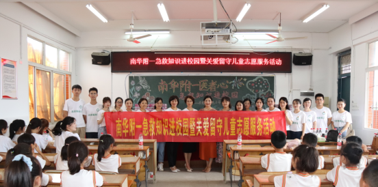为进一步普及中小学生应急救护知识,提高师生日常自我防护意识和紧急情况自救互救能力,持续关注留守儿童生活学习状况,温暖留守儿童心灵,与留守儿童一起健康成长,6月22日下午,6名来自南华大学衡阳医学院青年志愿者工作部的志愿者跟随南华大学附属第一医院护理志愿者服务队、群团工作部走进石鼓区角山乡明德小学,开展“急救知识进校园暨关爱留守儿童志愿服务活动”。