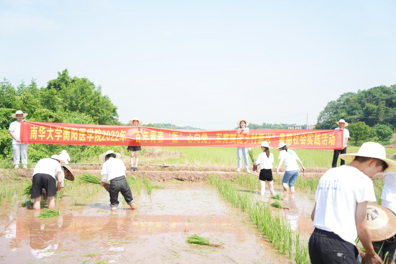 蓝天白云,白衣草帽,秧苗摇曳,蝉鸣不绝,这一派生生不息的景象发生在衡阳县西渡镇新桥村。6月30日上午,南华大学衡阳医学院“追寻百年奋斗征程,青春聚力健康中国”暑期社会实践服务团来到衡阳市西渡镇清花湾新桥村,开展“双抢”活动。服务团成员们和村民一起田地里“抢种”。