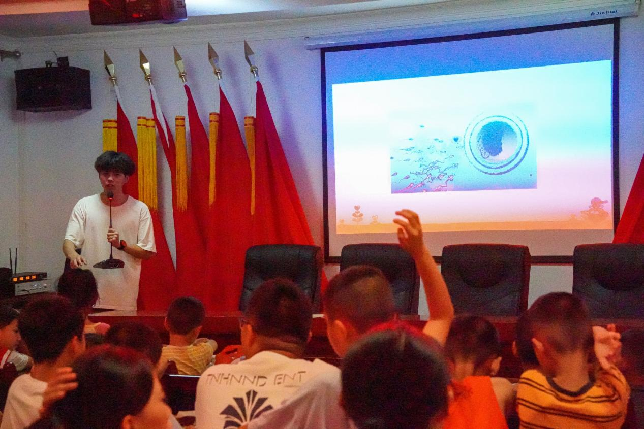 本次宣讲围绕“生命形成的过程”、“男女身体差异”、“什么是爱情”、“对坏人说‘不’”及“如何保护自己”等方面生动详细地为当地60余名留守儿童们讲解了相关知识。其中穿插了有奖竞答环节,充分提高了孩子们的求知欲,调动了孩子们的积极性,让孩子们对性教育相关理论知识有所了解的同时,使活动更妙处横生。在基本理论知识科普结束后,服务团成员与留守儿童们一起观看电影《怦然心动》节选片段,并对此进行剖析,进一步加强了孩子们对“爱情”的理解及自我保护意识。“我会保护好自己的隐私部位”、“我知道我是从哪里来的啦”……这些童稚的话语充斥着整个会议室。良好的性教育能让孩子们从小形成自我保护意识,有助于塑造孩子们的健全人格。让孩子们接受正确的性观念,学会保护自己、尊重他人成为了当今时代必不可少的篇章。