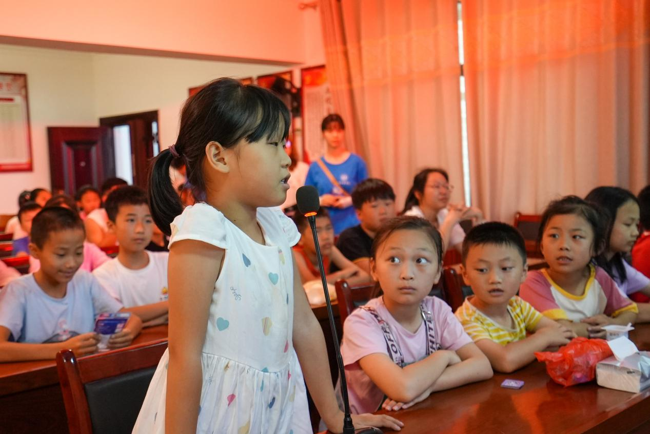 (7月2日上午,南华大学衡阳医学院“追寻百年奋斗征程,青春聚力健康中国”暑期社会实践服务团在衡阳县西渡镇新桥村开展了儿童性教育知识普及活动 彭嘉亮摄)