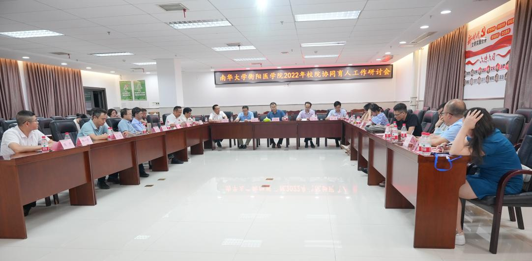 校院座谈话教育,共谋发展助成才。为进一步深化医教研协同改革,落实学校三全育人综合改革和学校第四次党代会精神,8月27日晚,南华大学衡阳医学院举办2022年校院协同育人工作研讨会,携手共话学生成长、共谋学生发展、共助学生成才,会议以线上线下同步方式举行。南华大学副校长、衡阳医学院党委书记姜志胜、校学工部部长李照、校研工部部长邹海贵、衡阳医学院党委常务副书记曾国、副院长屈顺林、院党委副书记卢清华、常德市第一人民医院副院长徐立新、湘潭市第一人民医院副院长吴勇军、公共卫生学院党委副书记王超、附属第一医院党委副书记、副院长祖旭宇、附属第二医院党委副书记、副院长唐小卿、附属南华医院党委副书记、常务副院长陈勇军、常德市第一人民医院科教科长彭红梅、附属郴州医院科教部主任奉建军、永州市中心医院科教部部长甘小艳、常德市中心医院科教科副科长曾玲、附属第一医院科教科主任朱柱、附属第二医院科教科主任陈哲、附属南华医院科教科主任傅念、附属第一医院科研部副主任谭甜甜、长沙市中心医院科教科副科长杨芬、南华大学衡阳医学院全体辅导员共约30余人线下参会,药学院党委副书记陈建平、护理学院党委副书记王祥、船山学院党委副书记刘期彪、长沙市第一医院副院长胡立强、株洲市中心医院副院长龙云铸、益阳市中心医院副院长刘文广、怀化市第一人民医院副院长朱均、邵阳市中心医院科教部主任陈亚红、岳阳市中心医院科教科科长龚燕飞和刘凤梅老师、株洲市中心医院教学科科长黄曼辉、株洲市中心医院教学科副科长陈慧伟、军事医学科学院乔鑫、湖南医药学院黄雪霜等线下参会。曾国主持本次会议。