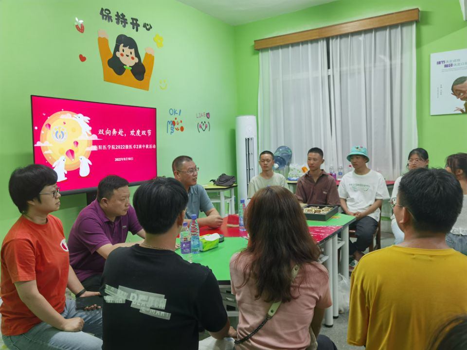 中秋满月,桃李满园,9月10日是中秋节也是教师节。晚上7点半,南华大学副校长、衡阳医学院党委书记、2022级卓越医生2班班主任姜志胜、卓医2班班导任重、辅导员周玲和班主任助理与卓医2班全体同学欢聚“医路阳光”成长辅导室,做月饼、话中秋、念师情,共赴一场秋光之约。