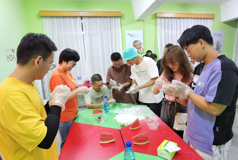 做冰皮月饼环节,大家分工合作,做饼皮、加馅料、拌干粉、放模具,一个个喜笑颜开,成就感满满。活动上,同学们还分享了自己的军训心得和在南华大学的所思所感,感情真挚,集体氛围浓厚。