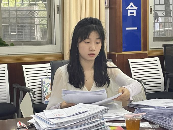 新生报到结束后,志愿者们耐心仔细地整理新生材料,做到准确、分类清楚、毫无遗漏。