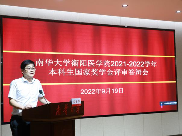 9月19日晚19点,南华大学衡阳医学院2021-2022学年本科生国家奖学金评审答辩会在南华大学红湘校区医研楼一楼会议室顺利举行。衡阳医学院党委书记曾国、副院长屈顺林、院党委副书记卢清华,班主任代表、研工部部长邹海贵,院学工室负责人佘雅、2018级学工办负责人曹霞、2020级学工办负责人苏玲、2021级学工办李杨、2022级学工办负责人周玲、学生代表张尚君共同担任评委。此次答辩会由姜茗岚同学主持。