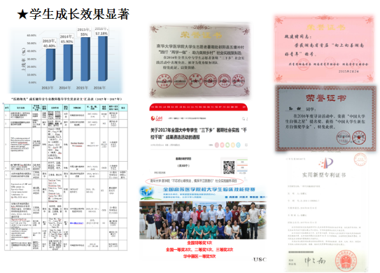 立项建设以来,开展各类辅导3000多人次,开办了每班两期共70余期的心理沙龙、6场针对人际交往和学业压力方面的团体辅导、1次心理素质拓展活动。建立家校联动学业帮扶机制,成功帮助260多人走出学业困境。近几年来,学院的本科生参加研究生报考率、上线率、考研录取率逐年增长。搭建科研平台,助力学优生科研和实践能力的提升,近3年来,有60余名学生在导师指导下,主持20余项创新课题,发表18篇科研论文。开展“医路阳光”系列学生活动,着力培养学生医德仁心,提升学生人文素养。学生成长成才的显著效果,相继在光明网、湖南日报、湖南教育网、湖南政府网、红网等媒体进行宣传报导,产生了广泛而深入的社会效应。