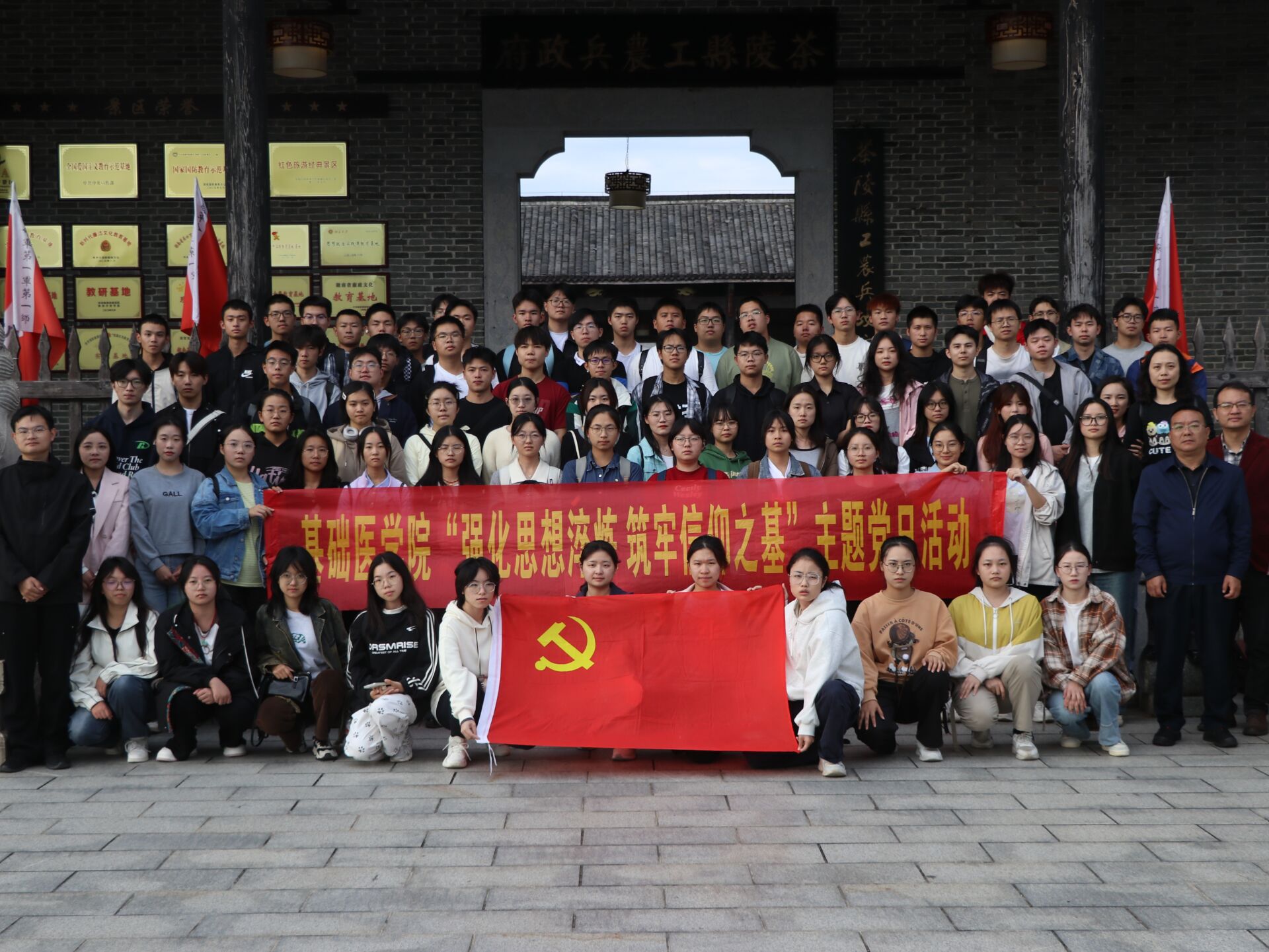 为深入贯彻党的二十大及二十届三中全会精神,对学生党员开展红色革命教育,南华大学基础医学院党委于11月9日组织了90余名学生党员赴罗荣桓故居及茶陵县工农兵政府遗址开展以“强化思想淬炼,筑牢信仰之基”为主题的党日活动,旨在共同追寻革命先烈的足迹,重温党的光辉历程。