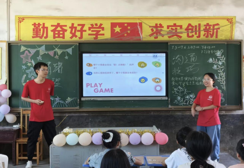 2025年7月4日,南华大学“壹禾”计划一一基础医学院童心守护者志愿服务队走进邵阳市邵东市黑田铺镇团结村圳玄小学,开展“童心同行,共筑梦想”留守儿童心理团辅活动。志愿者们围绕情绪沟通与安全教育两大核心主题,精心设计兼具教育性、趣味性与创新性的系列活动,以寓教于乐的方式,为孩子们科普安全急救知识,传授日常沟通技巧,助力他们在欢声笑语中收获成长。