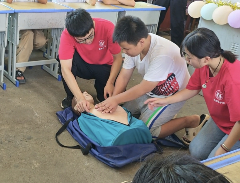 下午,“防溺水与急救安全教育”小课堂火热开启。志愿者陈疆、王彭梓宸化身“安全小导师”,围绕心肺复苏、海姆立克急救法两大急救重点展开教学。陈疆以通俗易懂的语言,详细讲解了溺水时如何通过人工呼吸施救,以及遭遇异物卡喉时的自救与互救方法;王彭梓宸则借助专业假人模型,现场演示操作步骤与关键细节。演示结束后,孩子们纷纷化身“急救小能手”,在模拟急救场景中亲身体验操作过程。近距离的实践互动,让原本晦涩的急救知识变得直观易懂,为孩子们应对未来突发状况筑牢安全防线。