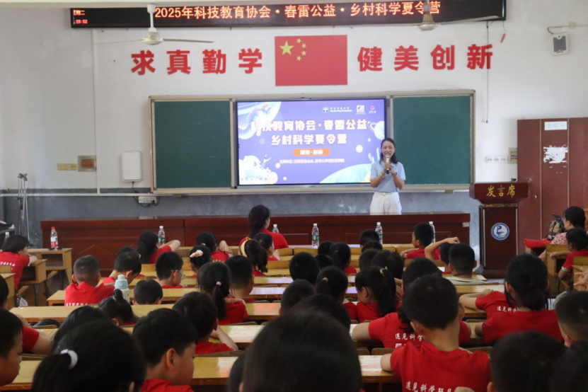 开营仪式上,春雷公益党支部书记、秘书长刘岳女士对志愿者老师提出明确要求,强调要用“耐心、责任心和爱心”陪伴乡村儿童,通过寓教于乐的方式激发孩子们的科学兴趣,注重科学知识与动手实践的结合,真正成为孩子们成长路上的引路人。同时,她满怀温情地鼓励孩子们珍惜学习机会,保持对世界的好奇心,用科学知识探索未来,并以春雷公益多年来助力乡村学子的实例,激励孩子们“用知识的力量走出大山,回馈家乡”。刘岳女士的话语既传递了对志愿者的殷切期望,也饱含着对乡村儿童的深切关怀,为夏令营注入了温暖而坚定的力量。