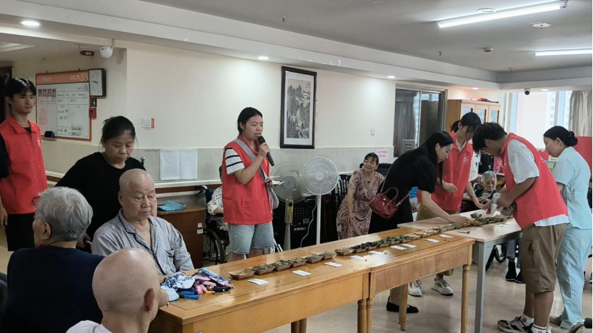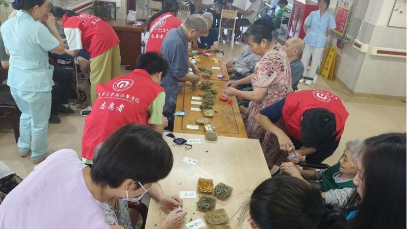 2025年7月7日上午,长沙市第一社会福利院养护一区活动室内,艾草、薄荷与丁香的清新气息氤氲满室。南华大学衡阳医学院“杏林篆爱,医路向阳”志愿服务队以一场驱蚊香包制作活动,将夏日关怀化作缕缕药香,为20余位老人送去贴心守护。