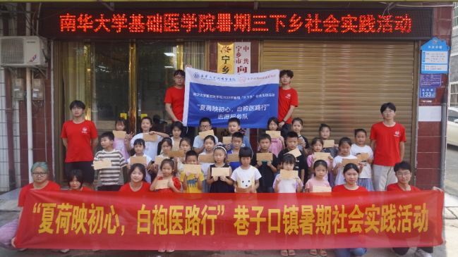 为隆重纪念中国人民抗日战争暨世界反法西斯战争胜利80周年,2025年7月11日,南华大学基础医学院“夏荷映初心,白袍医路行”暑期社会实践服务队在宁乡市巷子口镇,为28名留守儿童带来一场别开生面的爱国主义教育活动。活动创新运用人工智能技术,设计“影像重映英雄事”、“AI模拟对话英烈”和“书信寄情慰忠魂”三大环节,打造震撼心灵的沉浸式红色教育体验。