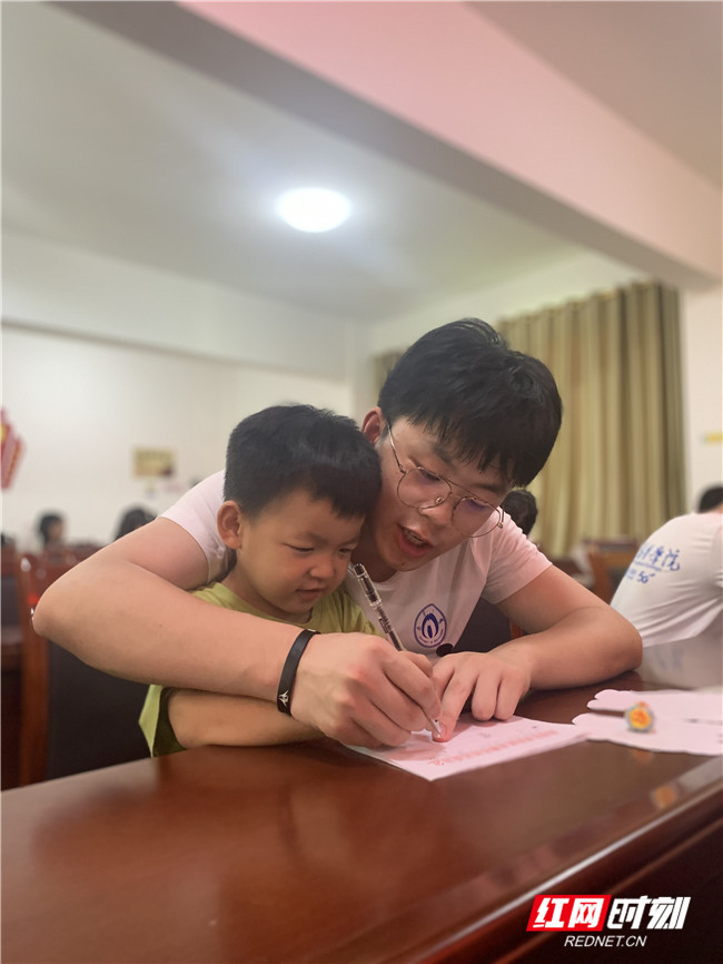 7月11日至13日,湖南南华大学衡阳医学院暑期社会实践服务团在衡阳市南岳区南岳镇水濂村连续开展了多项儿童团辅活动。11日下午,在“见字如面,读家书,学党史”活动结束后,深受感染的40余名衡阳市南岳区南岳镇水濂村留守儿童在服务团成员的帮助下,写下了一封封给爸爸妈妈的信。
