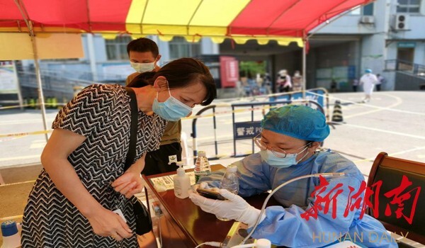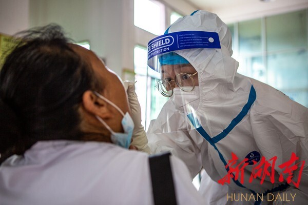 彭露是南华大学衡阳医学院大三的学生,家在吉首市,今年20岁,是个“00后”。7月31日,她在朋友圈看到了吉首市招募志愿者的“征集令”,毫不犹豫地报名了。“去年大家奔赴武汉战疫的身影至今历历在目。今年疫情发生在我的家乡,作为一名医学生,我要守护我的家乡。”彭露说。8月1日,她被分配到吉首市一中核酸采样点参与物资递送和核酸采样。