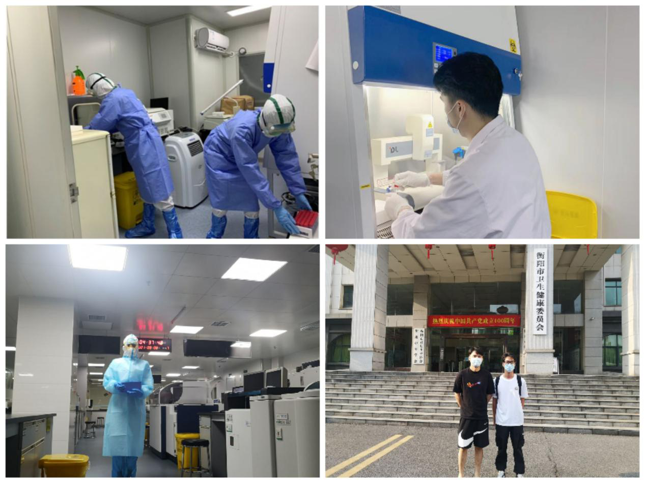 2020级博士生李振宇在衡南县医院检验科义务参加并负责抗疫工作,他的工作内容是参与前线核酸检测、管理实验室、保证实验室生物安全。他说:作为一名党员,一名医学生,防疫有需要,我就要站出来。